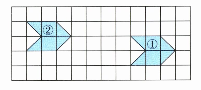 7. 把图形①先向( )平移( )格,再向( )平移( )格,就可以得到图形②。