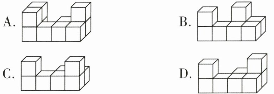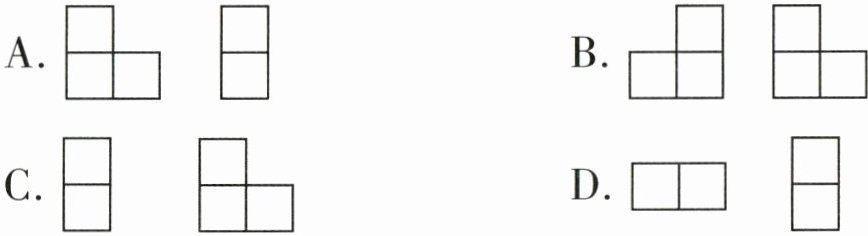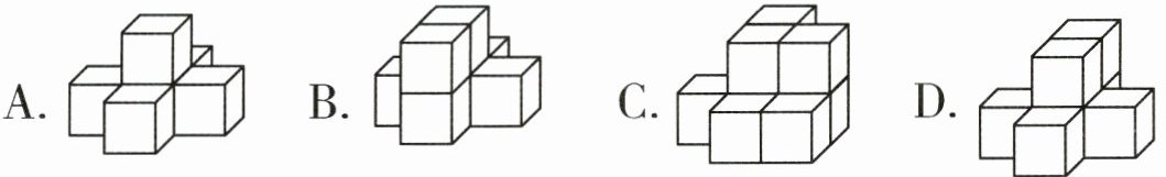 3. 用小方块搭几何体,从前面、上面、左面看到的形状如图,下列符合要求的几何体是( )。