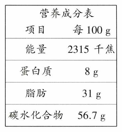 (2)小文今天吃了两袋该食品,通过该食品摄入脂肪多少千克?(3分)