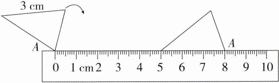 6. 如图,有一个等腰三角形平放在桌面上,以点A为起点,从0刻度开始在直尺上滚动一圈,转动过程中三条边保持紧贴在直尺边沿,这个等腰三角形底边长( )cm。