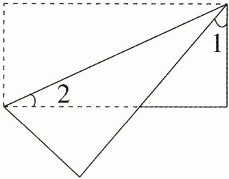 2. 如图,小轩把一张长方形纸沿对角线折叠起来,已知∠1是40°,则∠2是多少度? (5分)