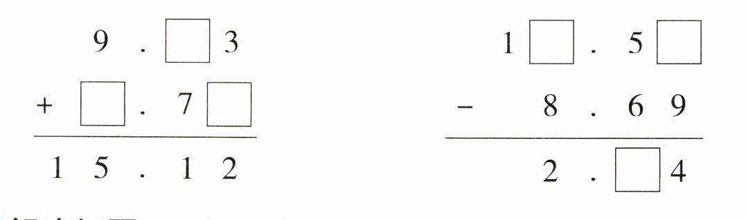 4. 在下列方框里填上合适的数字,使算式成立。(每题3分,共6分)