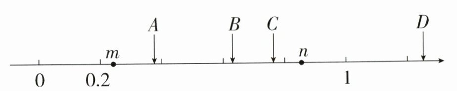5. 新素养 数感 如图所示,$n - m$的结果大约在( )处。