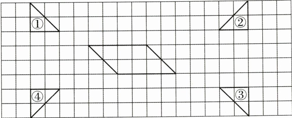 4. 下面方格纸上一共有4个直角三角形,通过平移可以和中间的平行四边形拼成一个长方形的直角三角形是( )。