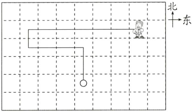 1. 王叔叔在森林里探险,他只记得从家里出来时先向北走了2m,然后向西走了3m,再向北走了1m,最后向东走了6m到了现在的位置。王叔叔想按原路返回,请你在图中画出王叔叔回家的路线,并用○标出王叔叔的家。(每个小正方形的边长为1m)(4分)