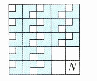 斜线上小正方形上的图案是 和 交替出现的,按此规律,N 处的图案应是 。