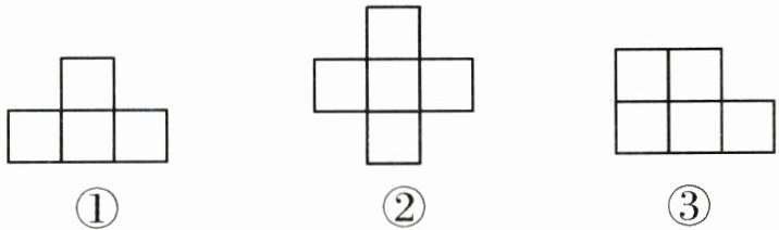 5. 如图,给图①添上一个小正方形可以变成图②或图③。关于这三个图形,下面说法正确的是( )。