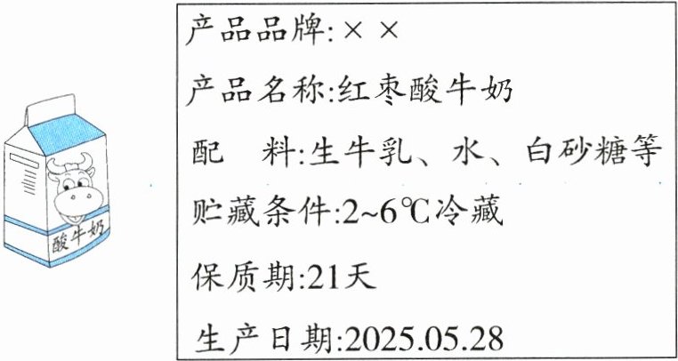 C. 爸爸2025年5月30日买了这盒酸牛奶,21天内可以正常食用