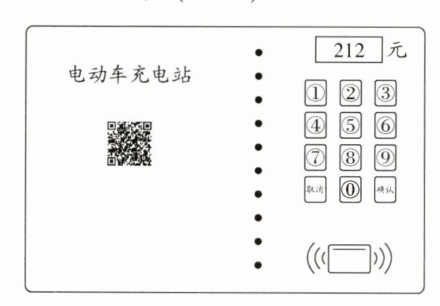 1. 新情境 新兴社会 近年来,很多小区都安装了电动车充电桩。赵叔叔办了一张充电卡,卡里余额如图,每次充满电大约需要3元,估一估,赵叔叔卡里的余额大约还可以给电动车充满电多少次?(5分)