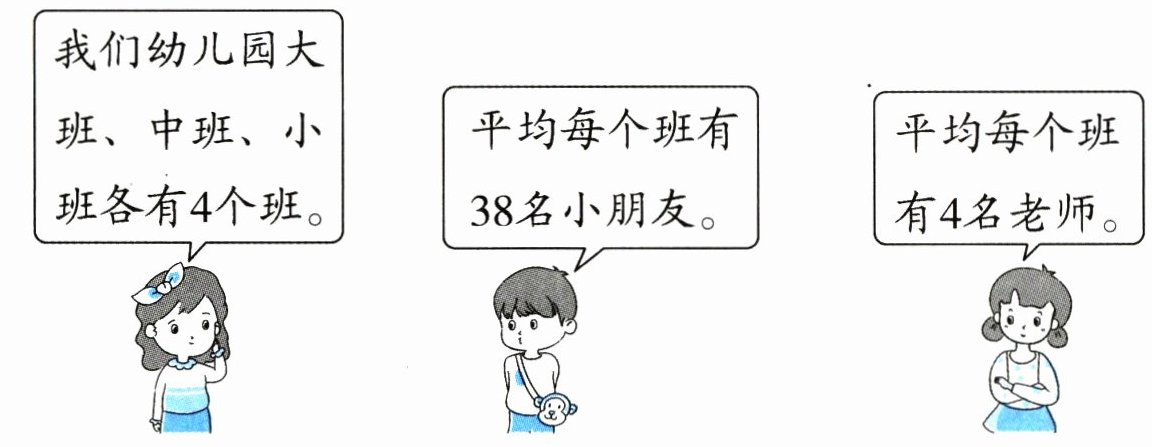 (1)38×4×3 = 456(名),答:幼儿园一共有456名小朋友。