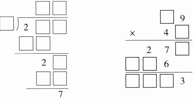 1. 把下面两个竖式补充完整。(6分)