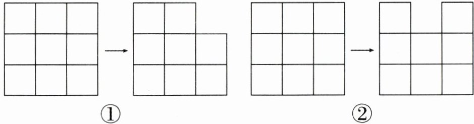 7. 如图①,从图中拿走一个小正方形,面积( ),周长( )。如图②,从图中拿走一个小正方形,面积( ),周长( )。(填“变大”“变小”或“不变”)