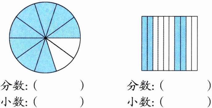 1. 把下面各图的涂色部分用分数和小数表示出来。