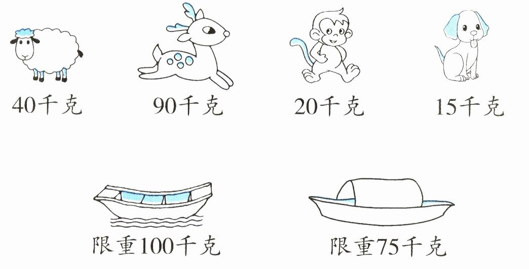2. 4只小动物要同时过河,怎样乘船才安全呢?连一连。(8分)