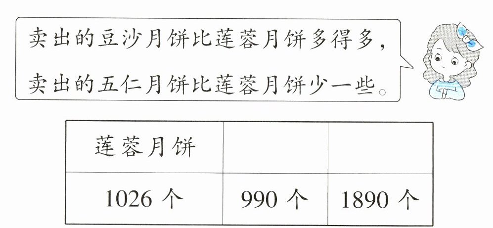 1. 中秋节到了,下面是某商店不同品种月饼的销售情况。根据给出的信息,猜一猜,填一填。(4分)