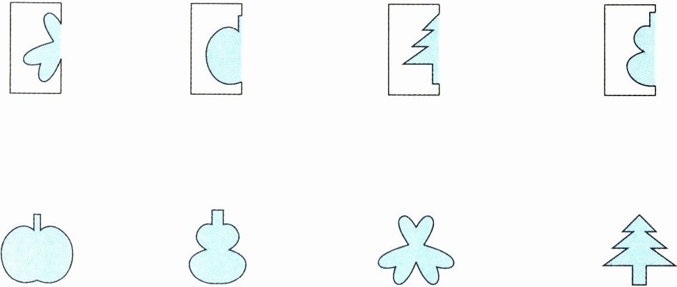 1. 从下面对折的纸上剪下涂色部分展开后形成什么图形?连一连。(8分)