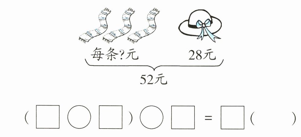 (52 - 28)÷3 = 8(元)@@6×5 + 18 = 48(元)或18 + 6×5 = 48(元)
