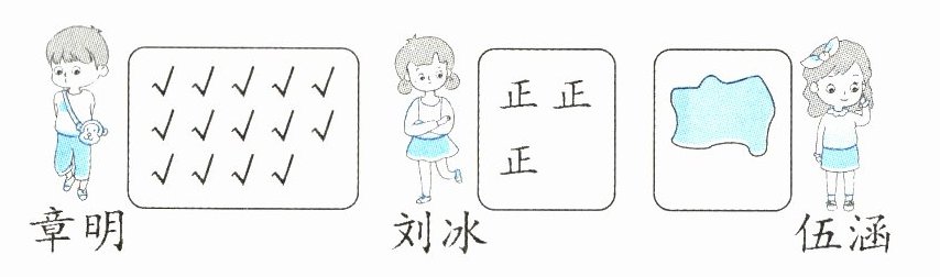 1. 二(2)班一共有45名同学,其中2名同学请假。3名同学竞选“劳动小能手”,投票情况如图。(每人只能投1票,竞选人不参与投票)(7分)