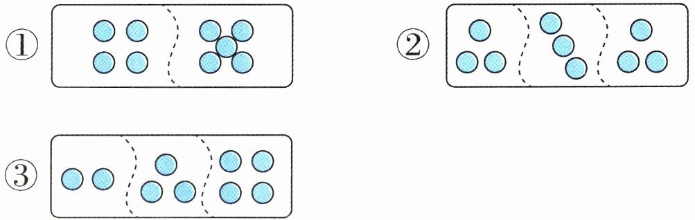 1. 把9个桃子平均分给3只猴子,下面分法( )正确。