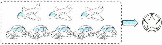 4. 教材重点题变式 小南在游乐场中拿到了 23 张小飞机贴纸和 28 张小汽车贴纸,已知兑换规则如下图,小南最多可以兑换多少个五角星徽章呢?(5 分)
