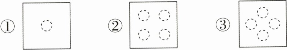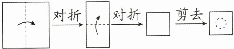5. >举一反三 如图,将一张正方形纸先左右对折,再上下对折,最后剪去一个圆,则展开图为( )。(虚线为折痕或剪痕)