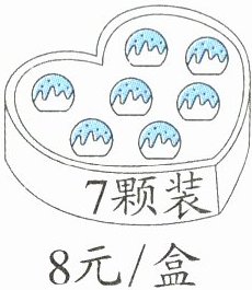 7. 如图,56元钱可以买( )盒这样的巧克力,一共买了( )颗巧克力。