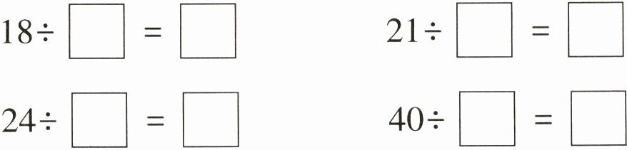 18÷2 = 9、21÷3 = 7、24÷4 = 6、40÷5 = 8。(填法不唯一)