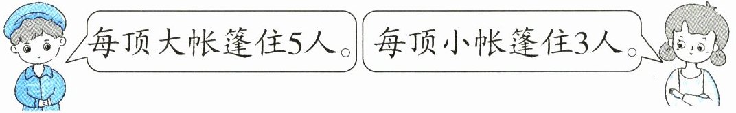 (2)23+3=7( 顶)……2(名)7+1 = 8( 顶)答:至少需要 8 顶小帐篷。