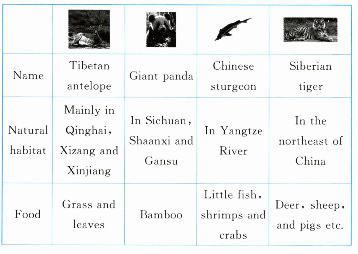 A. Tibetan antelopes B. Giant pandas C. Chinese sturgeons