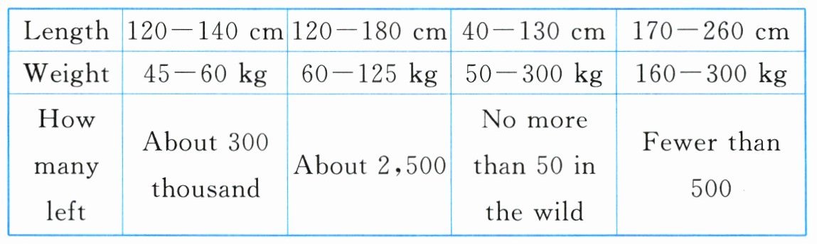 In China,some animals are in danger. The number of them is becoming smaller and smaller. Here is some information about them.