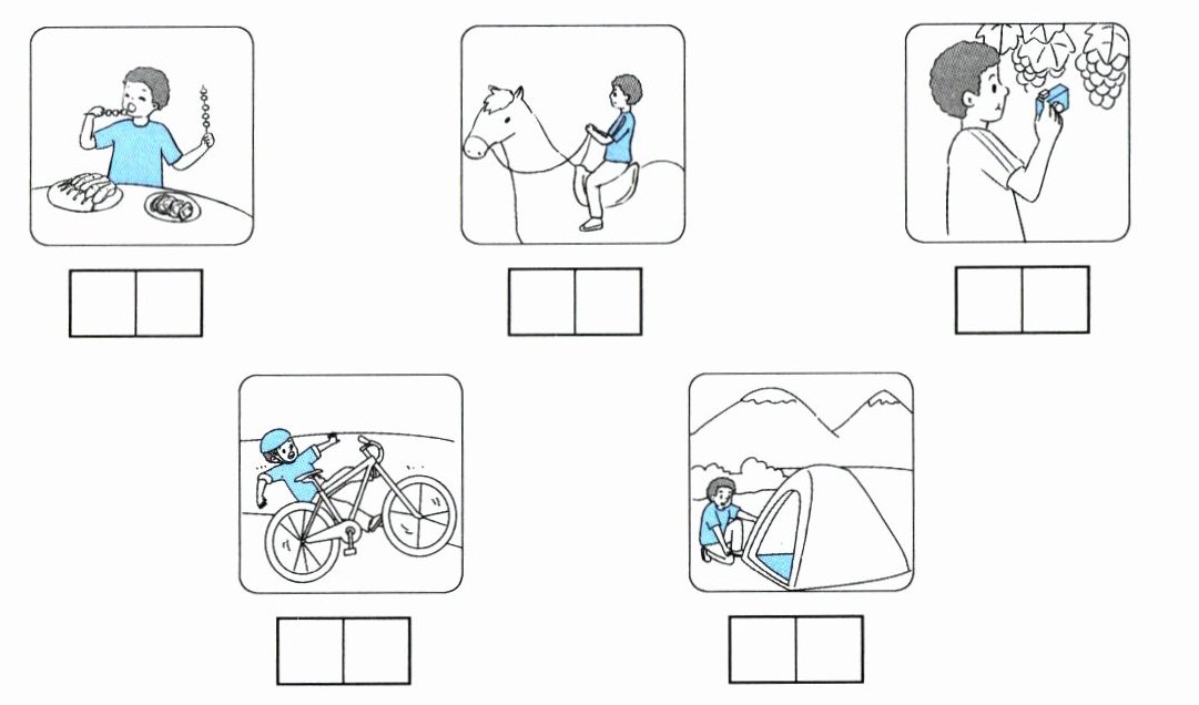 五 听录音,根据所听顺序用数字给下列图片排序并匹配图片活动。(听两遍)(10分)
