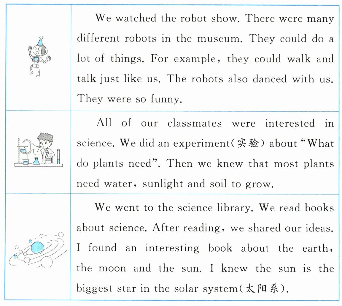 A. The robots could do all the things. B. We don’t think science is interesting. C. The sun is bigger than the earth and the moon.