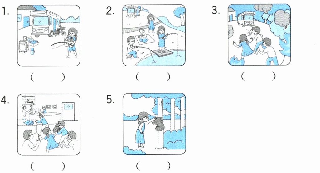 八、新趋势 绘本阅读 Tim也向Lily分享了读到的绘本。根据图片选择合适的文字,将序号写在对应图片的下方。(5分)