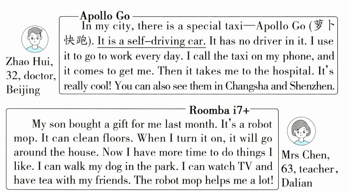 ( )3.“It is a self−driving car."Here“a self−driving car"is .