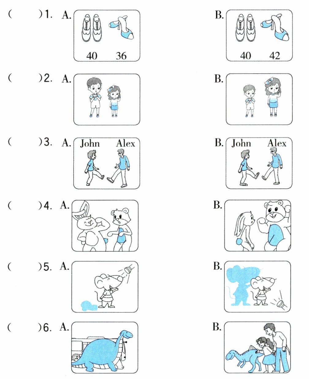 一 听录音,选出与所听内容相符的图片。(听两遍)(6分)