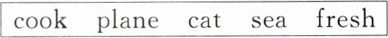 1. plane 2. cat 3. fresh 4. cook 5. sea