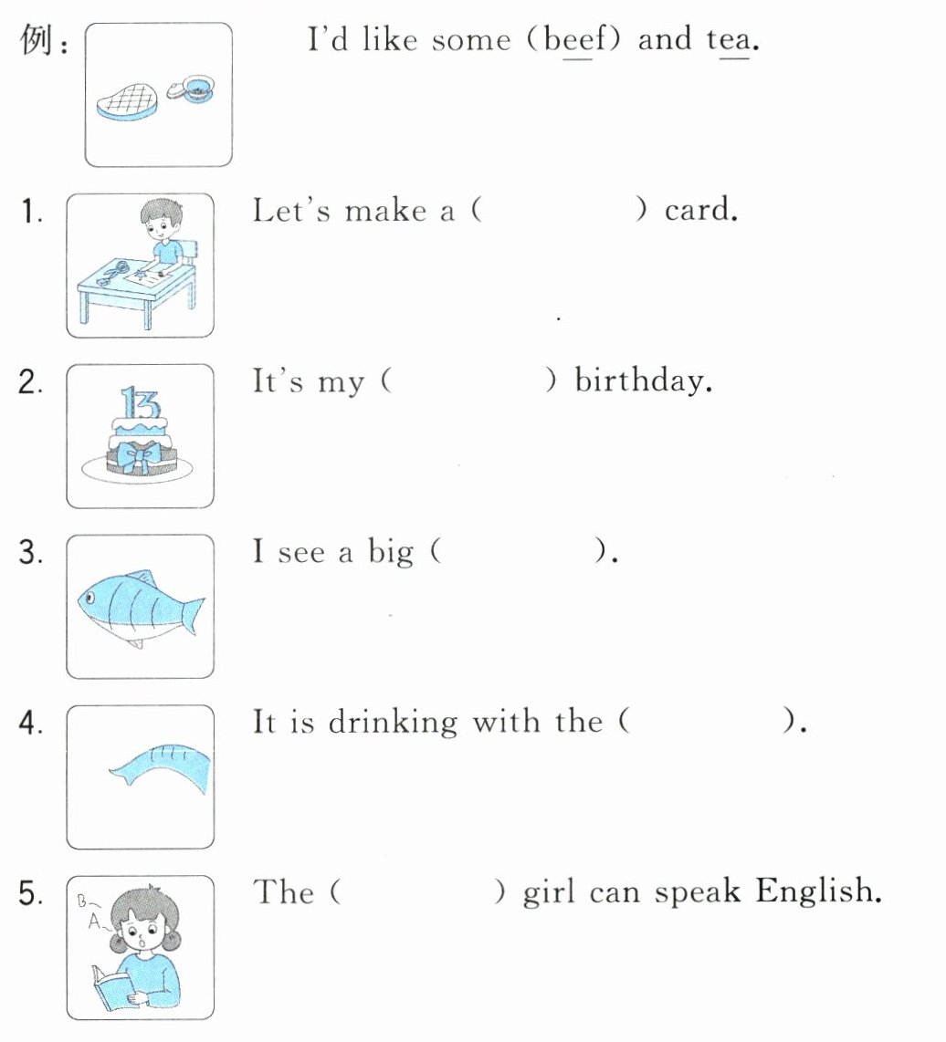 五 看图,根据发音规则选择正确的单词填空,完成句子,并在发音相同的字母或字母组合下方画横线。