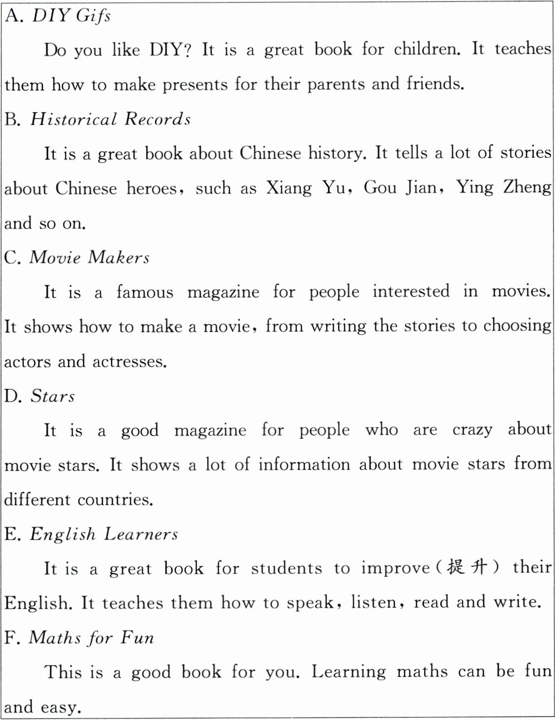 ( )4. Jenny is interested in movies. She likes reading magazines about actors and actresses in the movies.