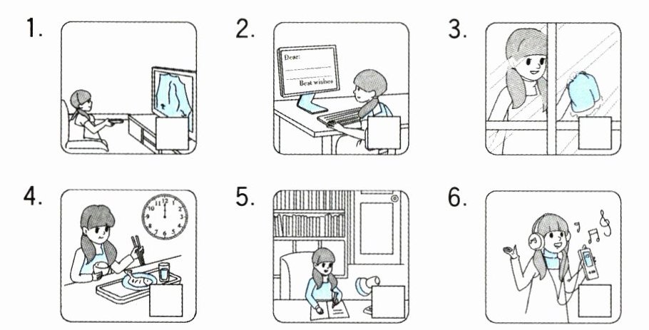 任务一:选出Chen Jie上周六所做的事情,在图片右下角画“√”。