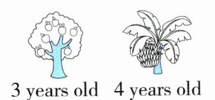 2. The apple tree is 3 years old. The banana tree is 4 years old. The banana tree is older than the apple tree.
