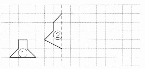 1. 画出图形①向上平移 3 格后的图形;画出图形②的另一半,使它成为一个轴对称图形。(6 分)