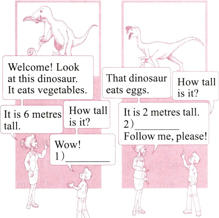 2) — ________ ________ is the dinosaur, Dad? — Maybe ________ metres.