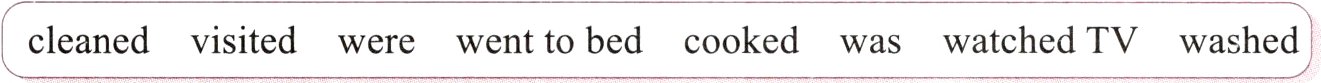 My mother ________ very busy last Saturday. She got up early in the morning and ________ the room. There ________ so many dirty clothes. So she ________ them for a long time in the morning. Then she took me to the supermarket. In the afternoon, she ________ my grandparents. My grandpa felt ill. So my mother took him to see the doctor. After she came back home, she ________ a big dinner for the family. After dinner, she ________ with us. We watched Happy Camp. She ________ at 10:00. My mother was so helpful!