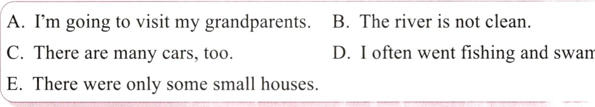 C. There are many cars, too. D. I often went fishing and swam in it.
