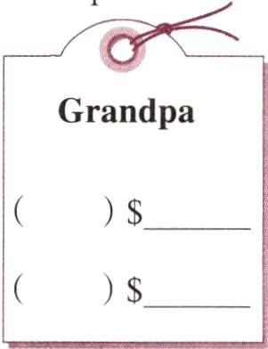 They bought fresh vegetables and some other things for the family. Please listen, choose and write the price.