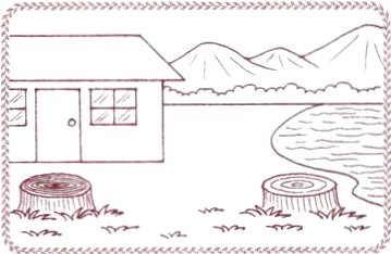 3) The tree in front of the house is ______ than the one by the lake.