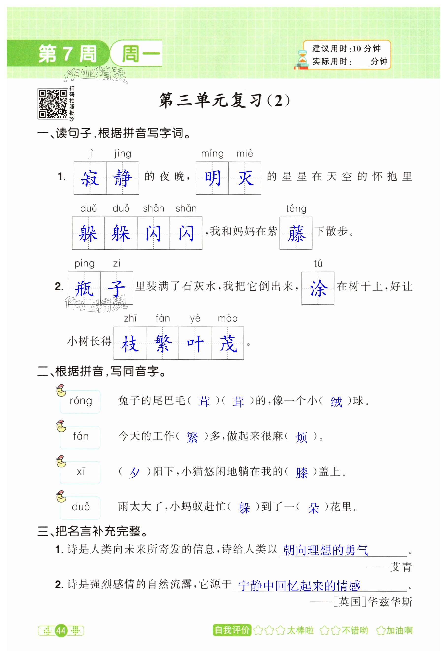 注:目前有些书本章节名称可能整理的还不是很完善,但都是按照顺序排列的,请同学们按照顺序仔细查找。练习册 2025年阳光同学默写小达人四年级语文下册人教版 答案主要是用来给同学们做完题方便对答案用的,请勿直接抄袭。