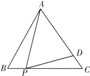 例1如图,等边△ABC中,AB = 3,点P为BC边上的一点,且∠APD = 60°,BP = 1,求CD的长.