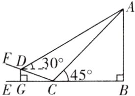 10.(鄂州中考)如图,市民甲在C处看见飞机A的仰角为45°,同时另一市民乙在斜坡CF上的D处看见飞机A的仰角为30°. 若斜坡CF的坡比i = 1:3,铅垂高度DG = 30 m(点E,G,C,B在同一水平线上).