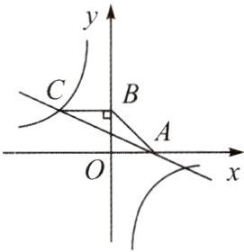 (2)$\because AB = 2\sqrt{2}$,$\therefore B(0,2)$,$C( -3,2)$,设一次函数的解析式为 $y = kx + b$,代入$(2,0)$,$( -3,2)$,得 $k = -\frac{2}{5}$,$b = \frac{4}{5}$,$\therefore$ 一次函数解析式为 $y = -\frac{2}{5}x + \frac{4}{5}$。
